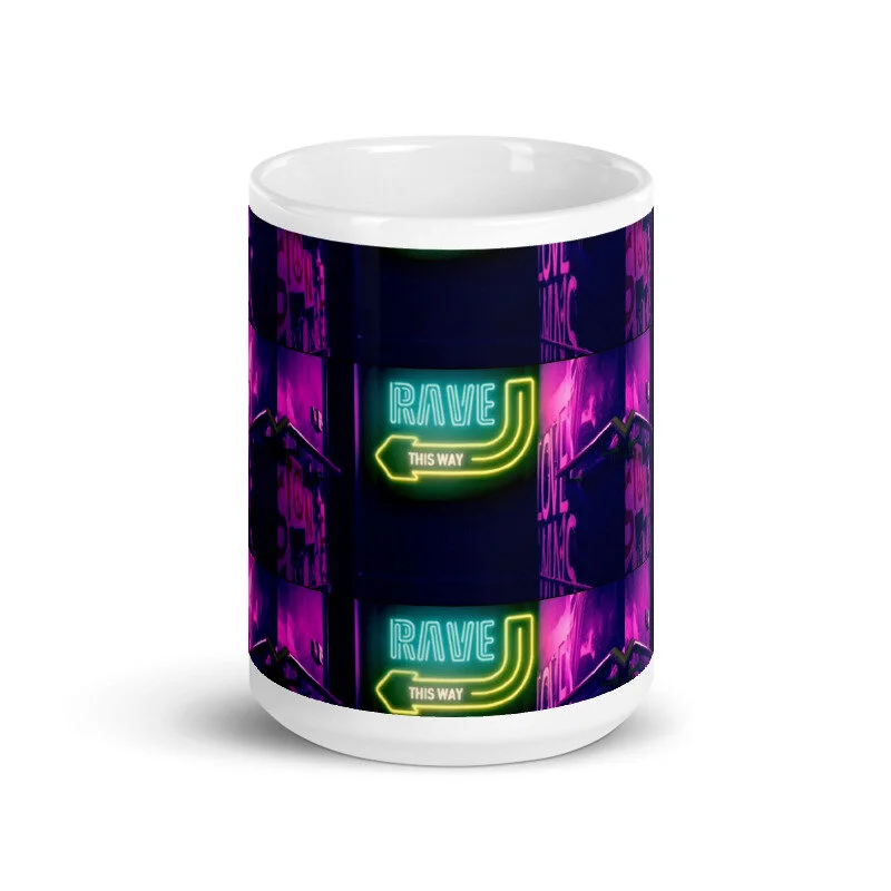This sturdy mug is perfect for your morning coffee, afternoon tea, or whatever hot beverage you enjoy. It's glossy white and yields vivid Rave print that retain their quality when dish-washed and microwaved.